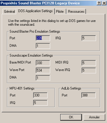 Remarque : les drivers génériques des cartes sons fournis par Microsoft pour ME ne fonctionnent pas toujours trés bien sous DOS...Utilisez plutôt ceux de votre constructeur.